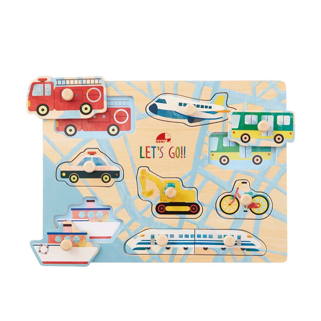 Thiết kế thông minh: Mỗi miếng ghép các phương tiện đều có núm cầm bằng gỗ chắc chắn, giúp bé dễ dàng cầm nắm và rèn luyện vận động tinh.