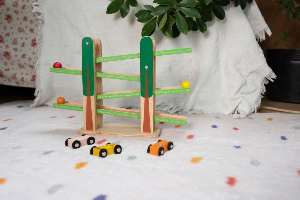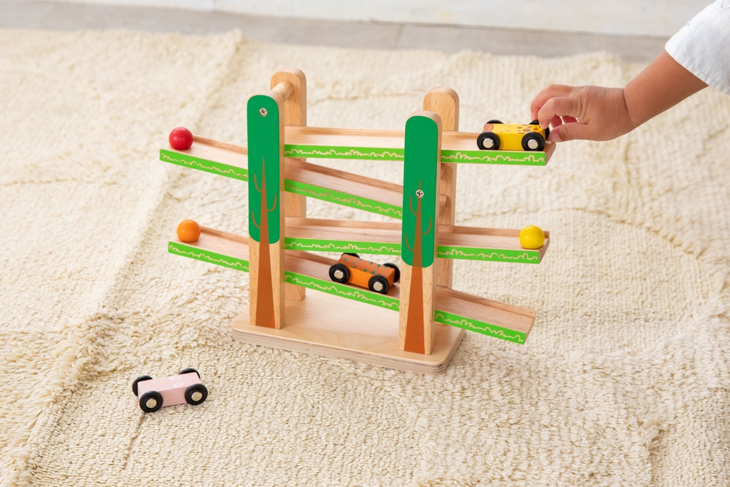 Thiết kế thông minh: Hệ thống đường đua liên hoàn và các xe đua nhỏ với màu sắc sinh động, giúp bé nhận biết màu sắc và phát triển kỹ năng vận động tinh.