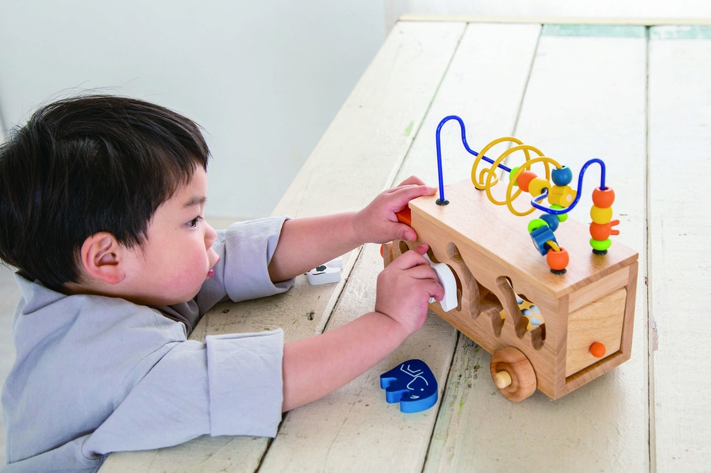 Xe Xâu Hạt (Bead Maze): Phía trên xe tích hợp một mê cung xâu hạt với các đường uốn lượn, thách thức khả năng khéo léo của đôi tay.