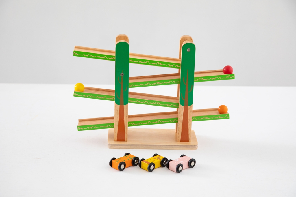 Thiết kế thông minh: Hệ thống đường đua liên hoàn và các xe đua nhỏ với màu sắc sinh động, giúp bé nhận biết màu sắc và phát triển kỹ năng vận động tinh.